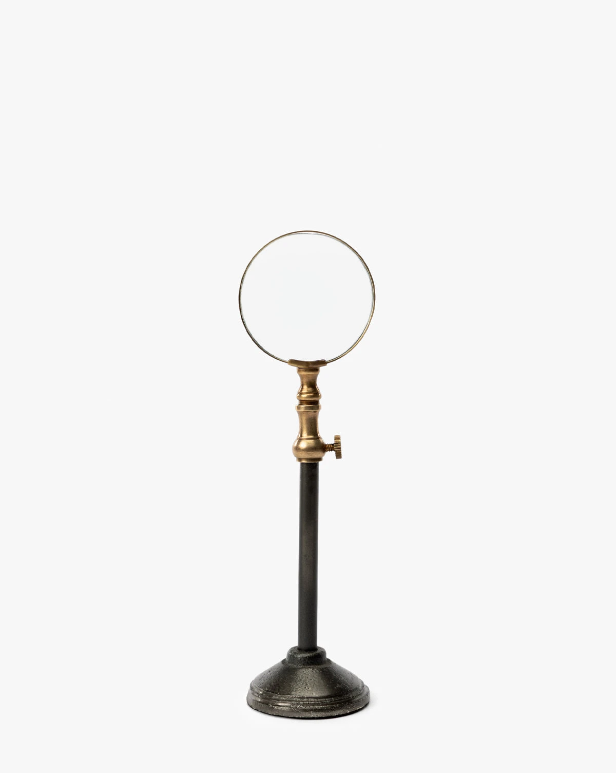 Whether you’re curating an elegant vignette or styling your home with a curiously eclectic aesthetic, our Barnabas Standing Object adds the perfect touch of old-world charm. The standing magnifying glass features a classic silhouette thoughtfully crafted with warm burnished brass and anchored with an iron base and stem.