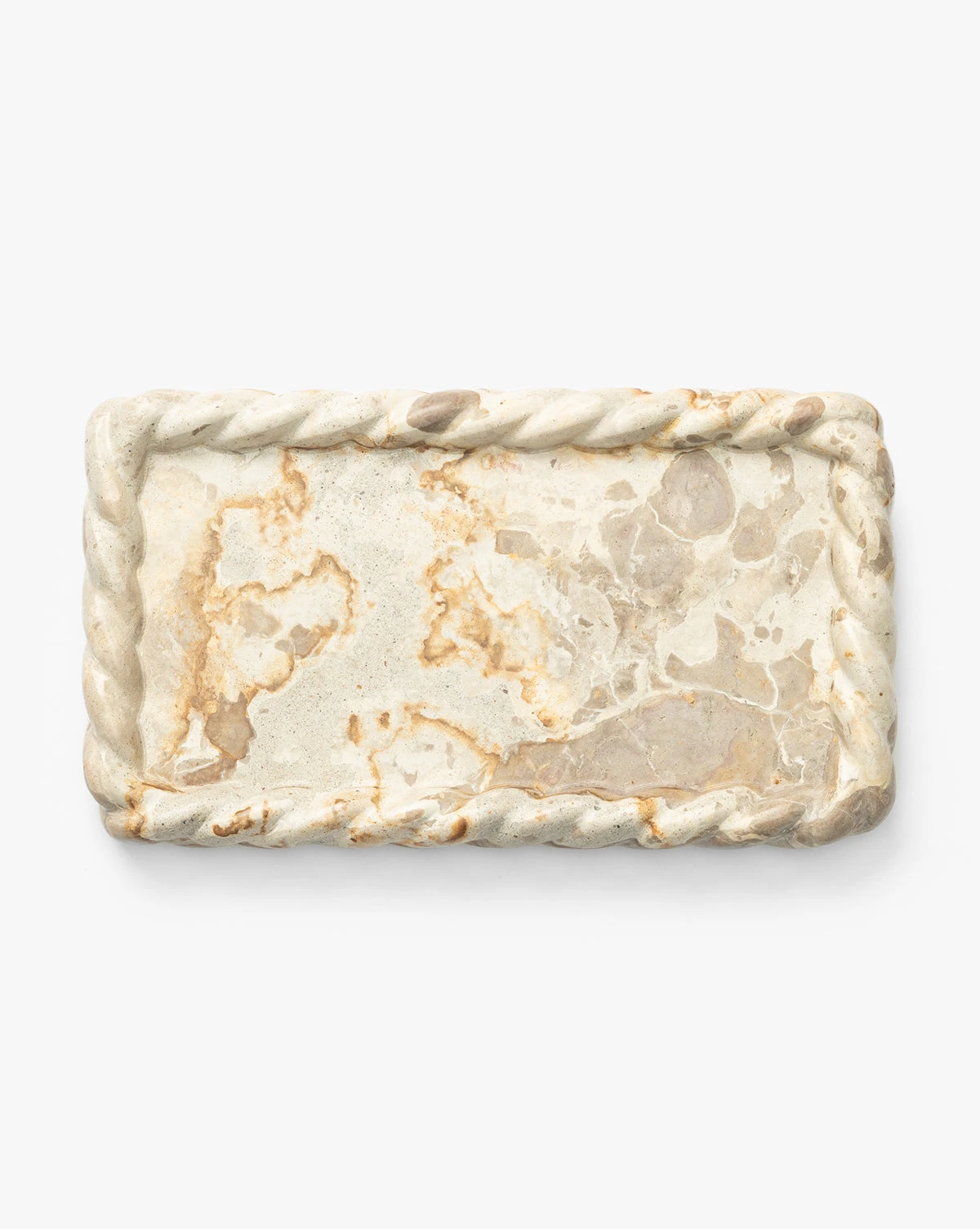 Add a touch of organic elegance to your space with the Cleves Marble Tray. Crafted from beautifully veined marble and finished with a sculpted rope-edge detail, it’s perfect for styling on vanities, coffee tables, or countertops to keep essentials artfully arranged and effortlessly refined.
