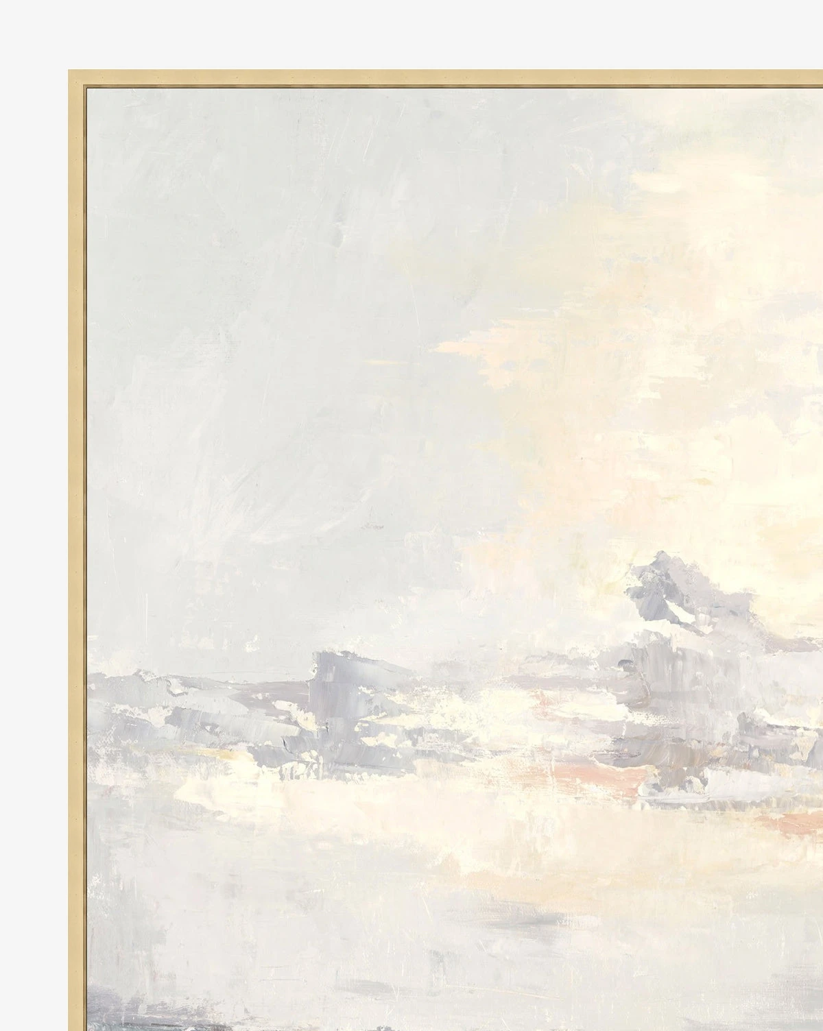 Cool blues and warm peach tones combine to create a serene impression of a Coastal Sunset that you can hang on your wall so you never have to miss one.