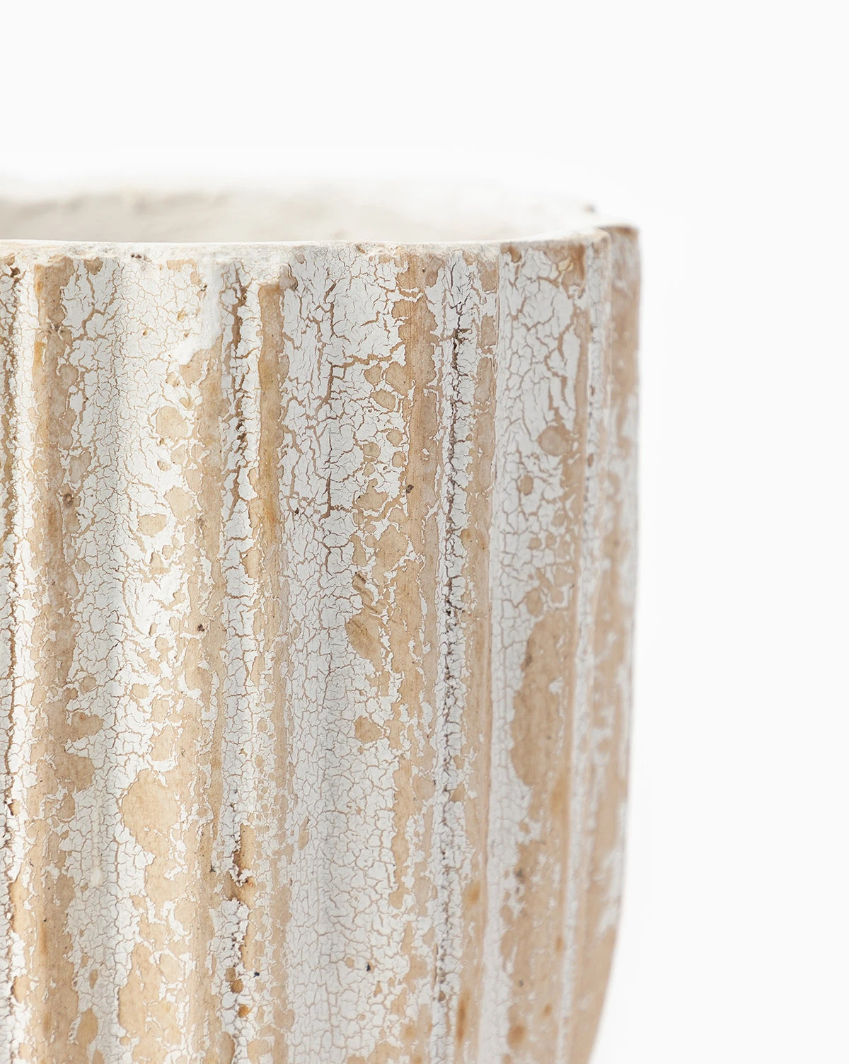 Creative and textural, the Eleonora Paper Mache Pot brings the artisan feel of paper mache to your vignettes. Its petit form is complemented by a reeded design and gold painted accents, making a statement among your decor whether styled on an accent table or a built-in shelf.