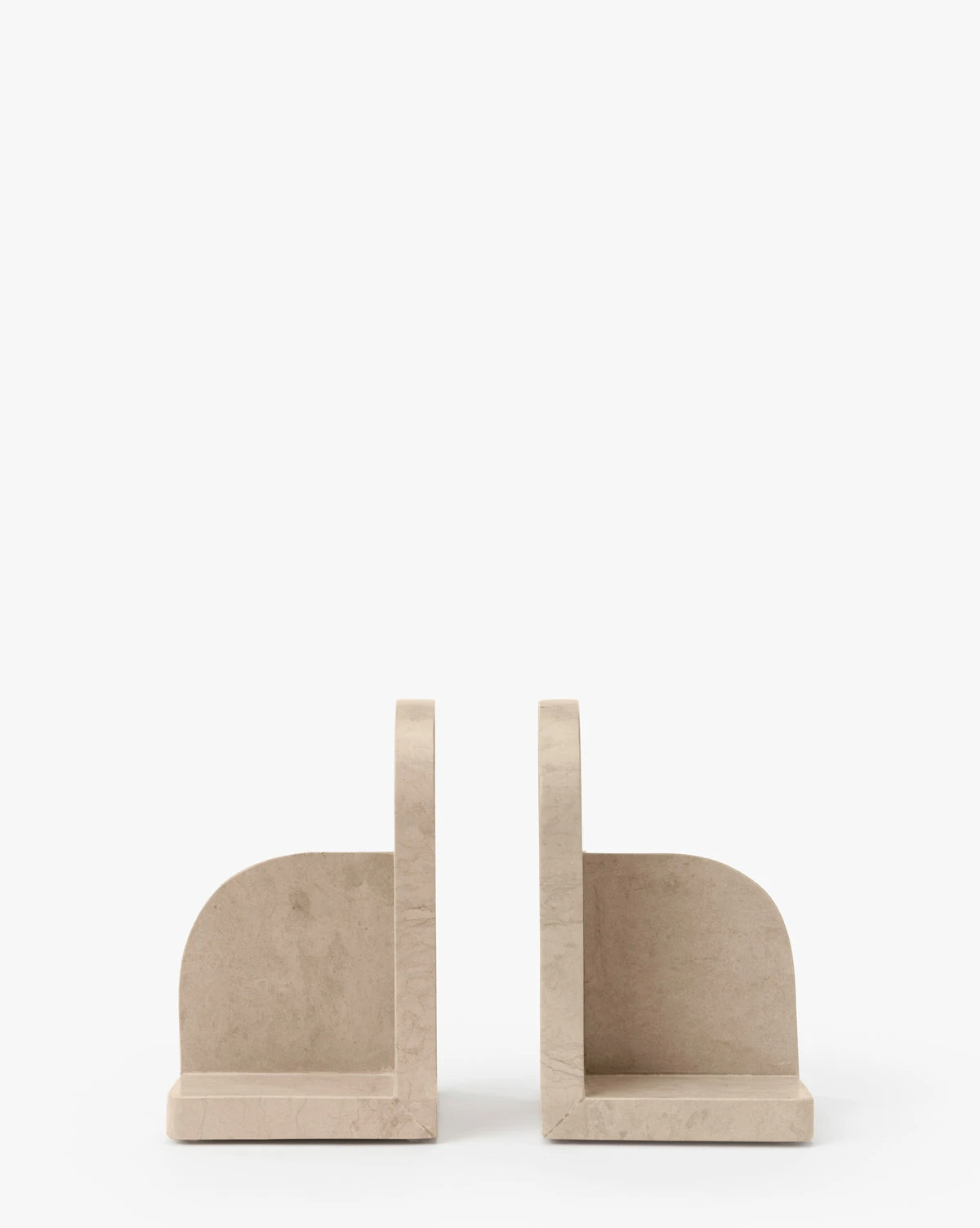 Artisan crafted from Camello Neve Marble, our Foster Stone Bookends deliver a modern take on classic decor. The organic shape adds dimension to your vignettes and is perfect for styling in built-ins or bookshelves.Â
