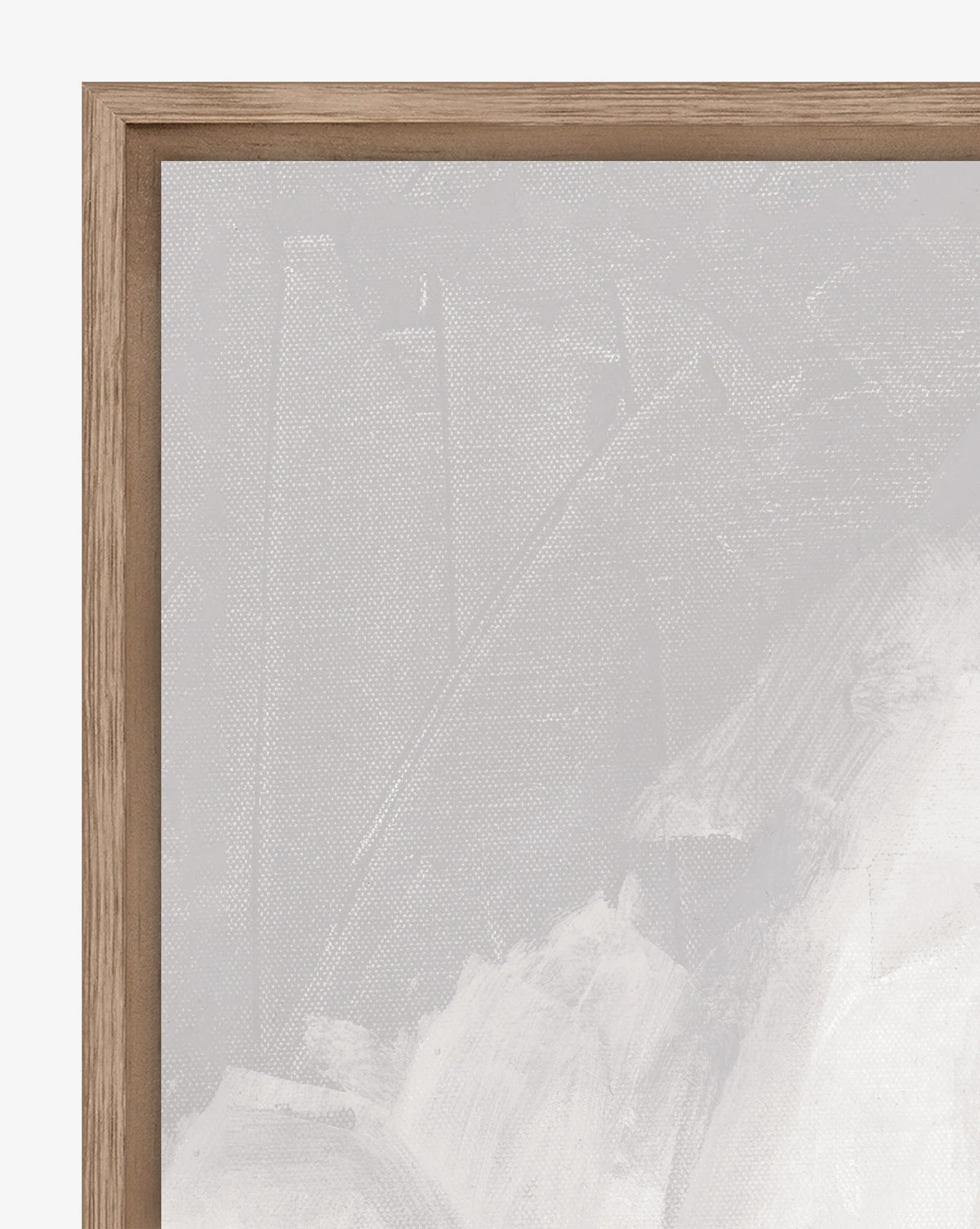 With a dramatic composition, Fractured II takes inspiration from nature, using a calming cool and neutral palette. Framed within natural wood, the piece elevates your decor with its details and museum-quality materials.Â