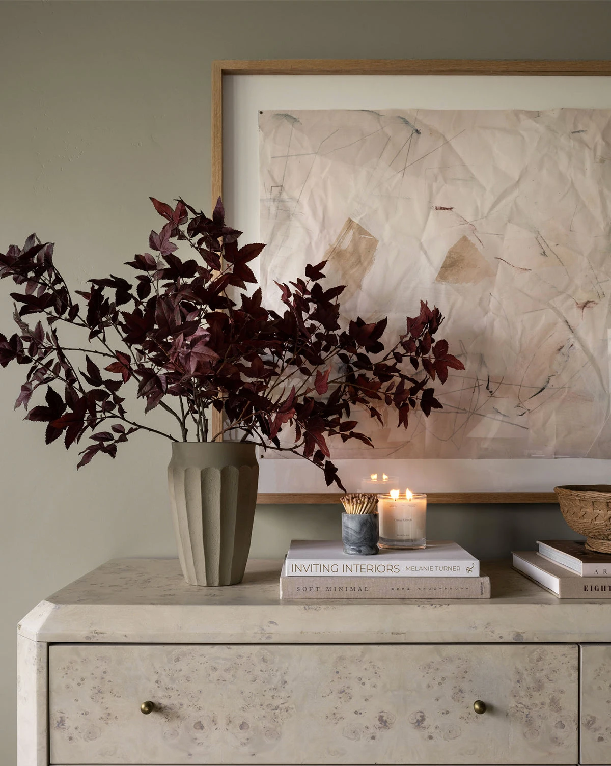 With a cool green tone, the Frida Vase is made from ceramic and beautifully hand-glazed. Its subtle taper brings a modern feel to this classic vase, complementing built-in or console vignettes with ease.
