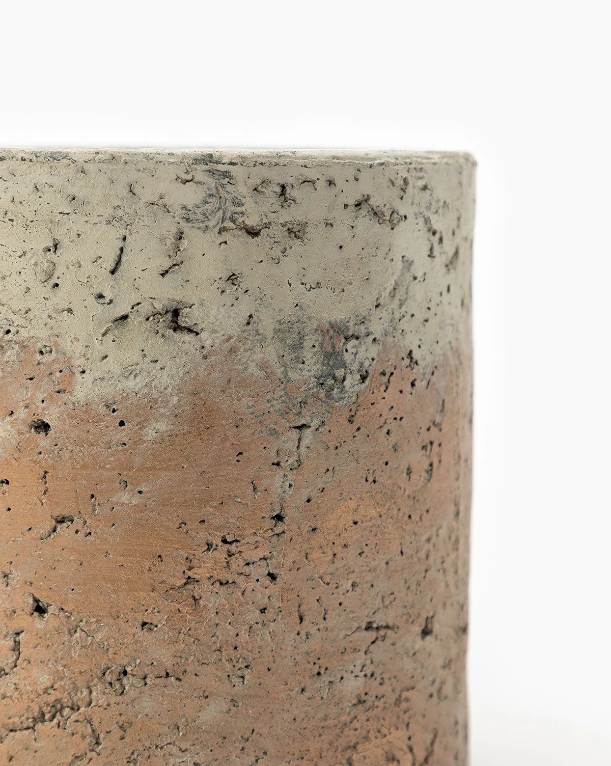 Simplistic with a modern edge, the tonal hue of our Golden Cement Pot warms up your space with its warm rust and cream hue. Styled in pairs in your built-ins or holding your favorite flower arrangement, this vessel lends an added layer of interest with its weathered look and feel.