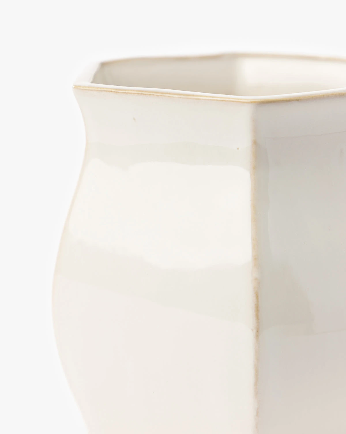 With an artisan quality, the Kasha Cream Pot brings a sleek and shapely presence to your space. Made from ceramic with a white glaze, the pot complements your decor wherever it is styled.