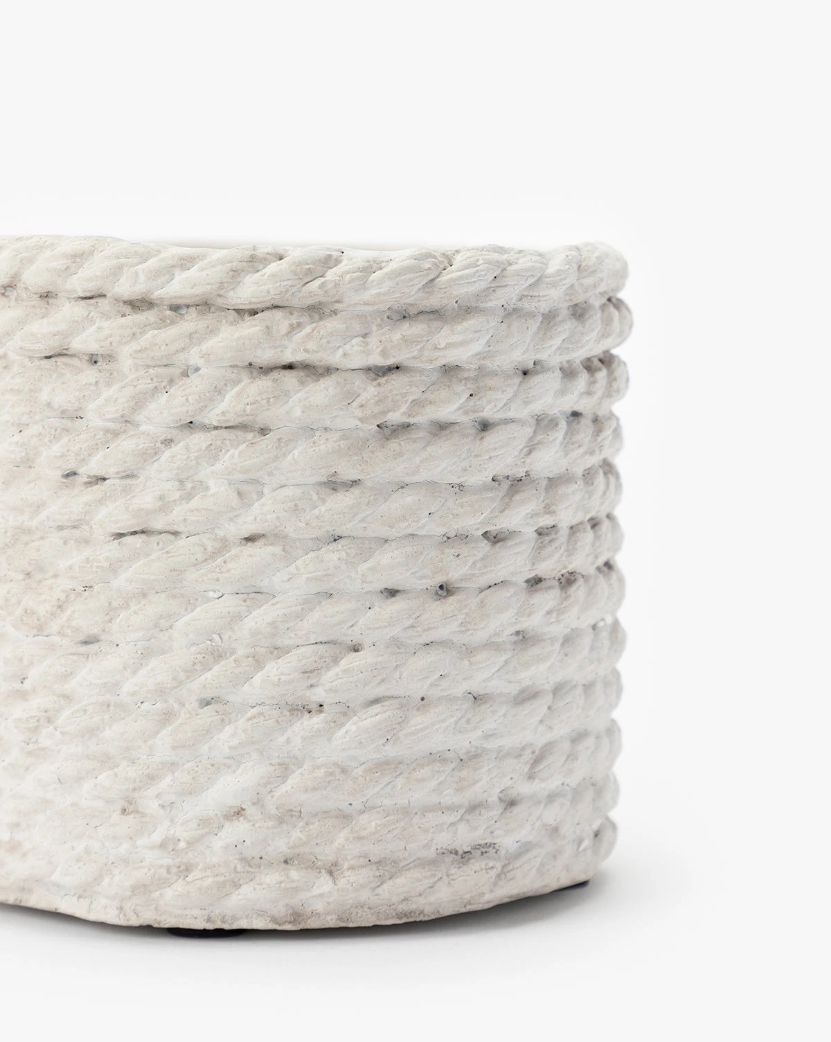 The Koa Cement Planter features a woven texture made of 100% cement in a gray finish. Its design brings subtle dimension to your styling, indoors or out, and is the perfect accent for your favorite greenery.