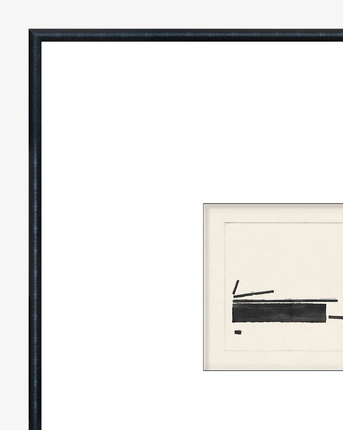 With a captivating composition, Matchsticks IV is a simple yet sophisticated abstract work of art. With a black textured frame, the piece is mounted on a matte with a dark core to create a bold line around the image. Â