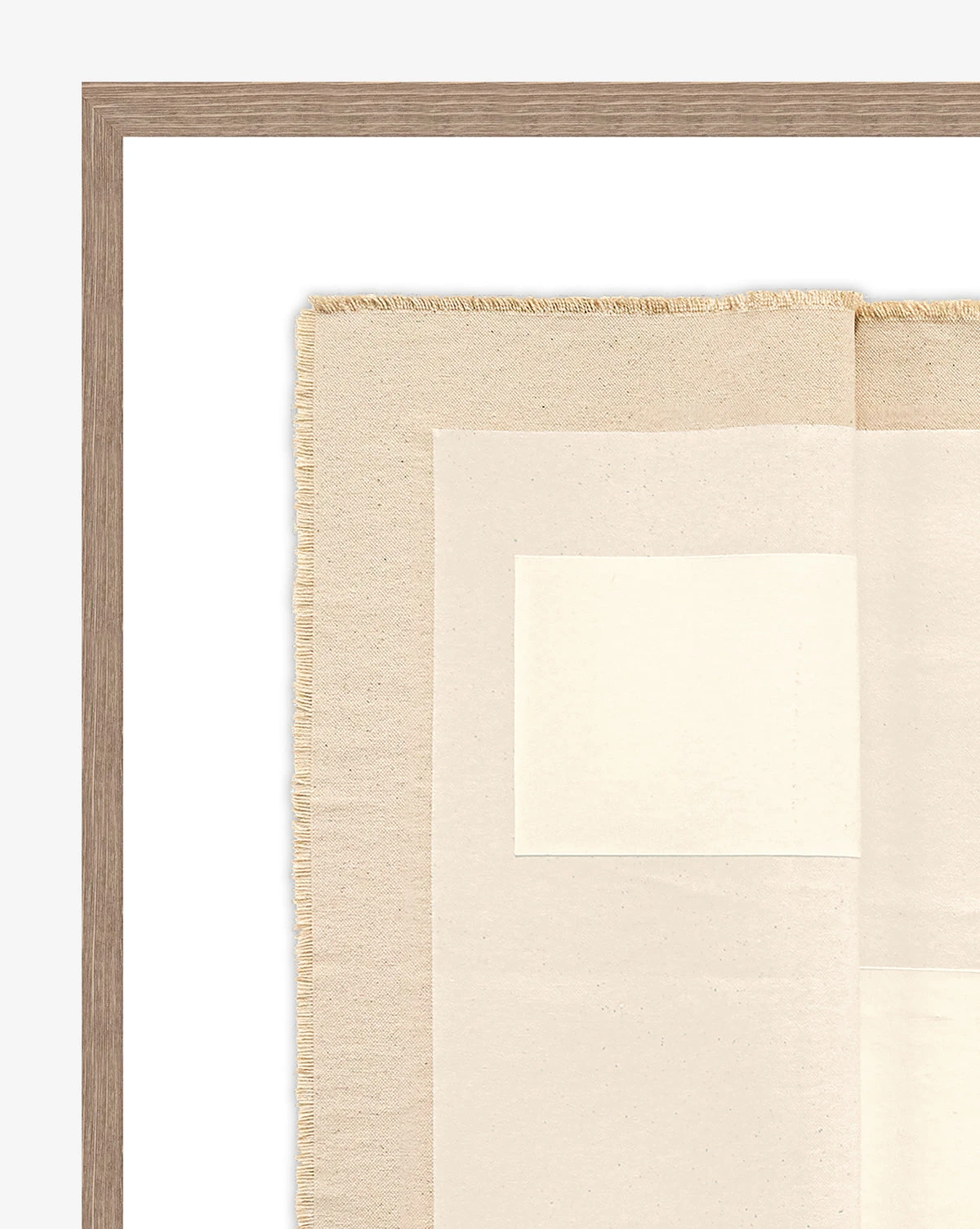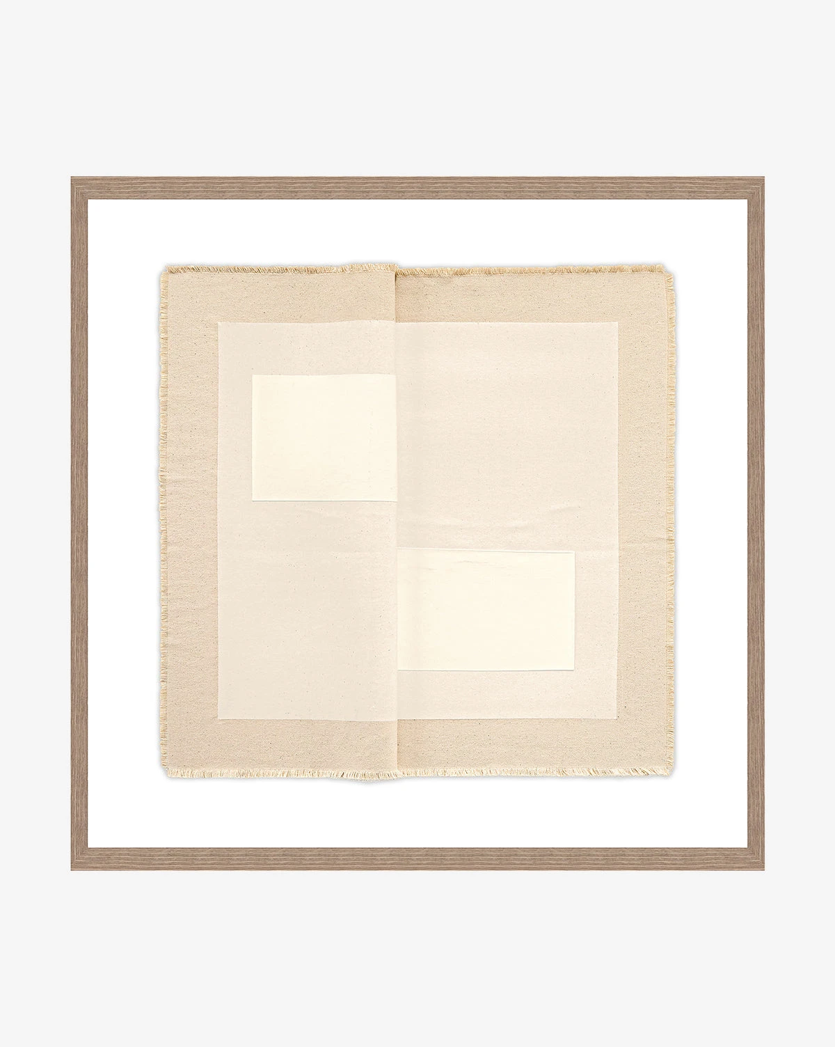 With three-dimensional texture, Mind Division IV is a hand painting on fabric. Its frayed edges and folded element bring dimension and detail wherever it is placed. Framed in natural wood, museum-quality materials elevate your decor.  Â