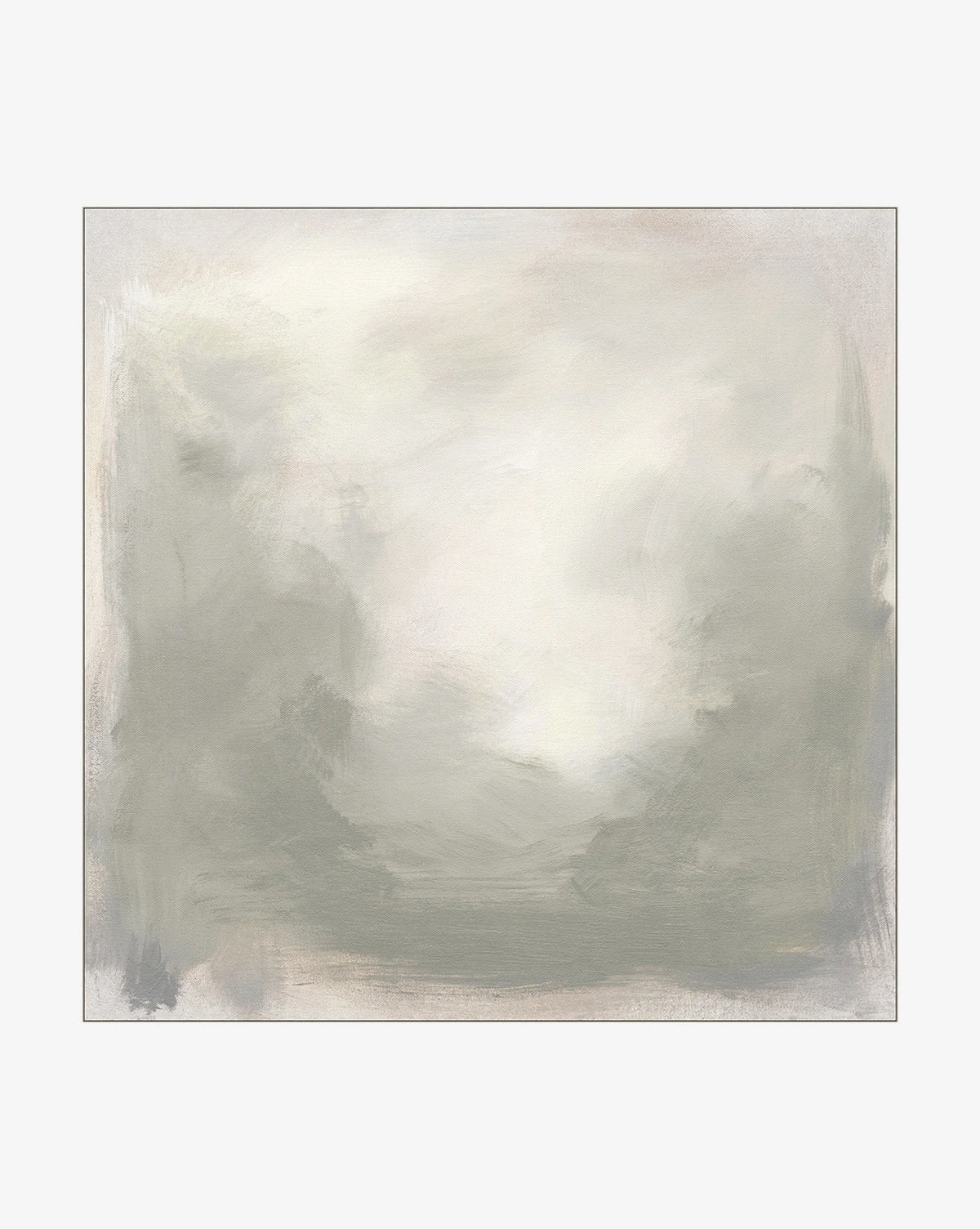 With muted tones put on a grand scale, Mountain Fog is sure to fill the entire room with a soothing atmosphere. Through soft strokes of muted greens, taupes & grays this abstract piece creates a quiet and calm experience.