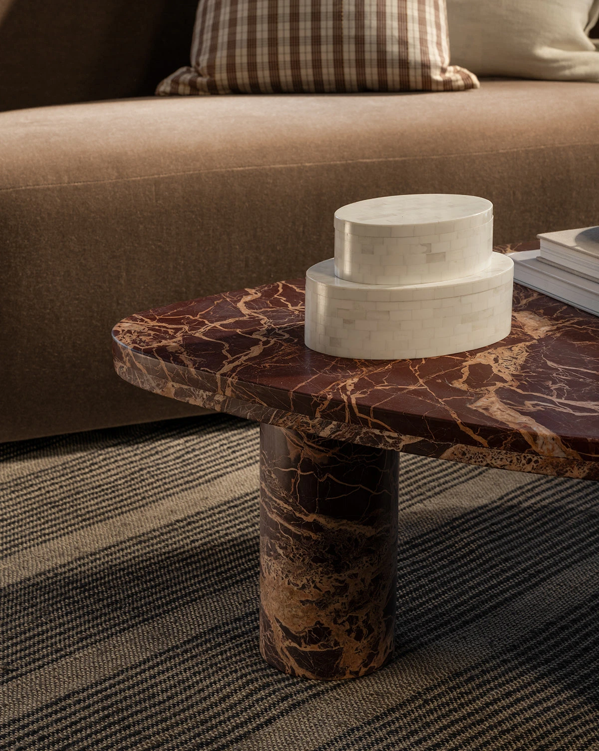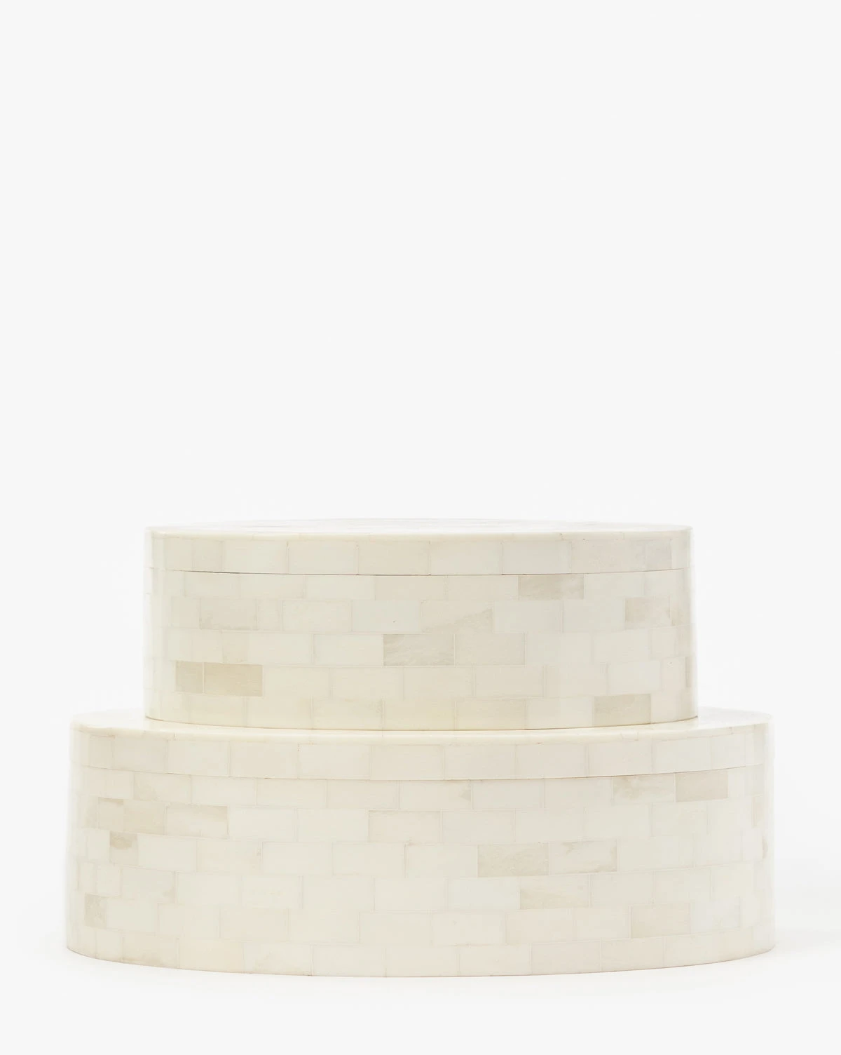 Organic materials bring an element of warmth to the Nico Oval Bone Box. Crafted from bone, the piece has straightforward lines that highlight all the natural deviations in the color of the material. Â