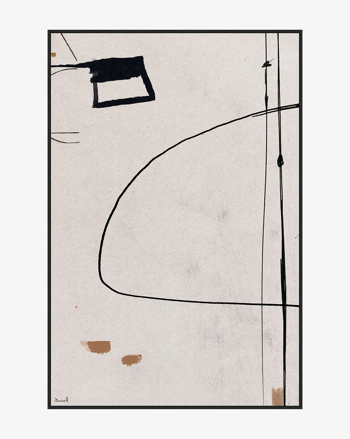 Abstract and full of contrast, Observation I is a giclee print on gallery-wrapped canvas, depicting shape and movement within its innovative composition. Using a limited palette, the piece plays with dark brush strokes that draw the eye across the canvas. In a black wood frame, this piece brings a gallery quality to your home.