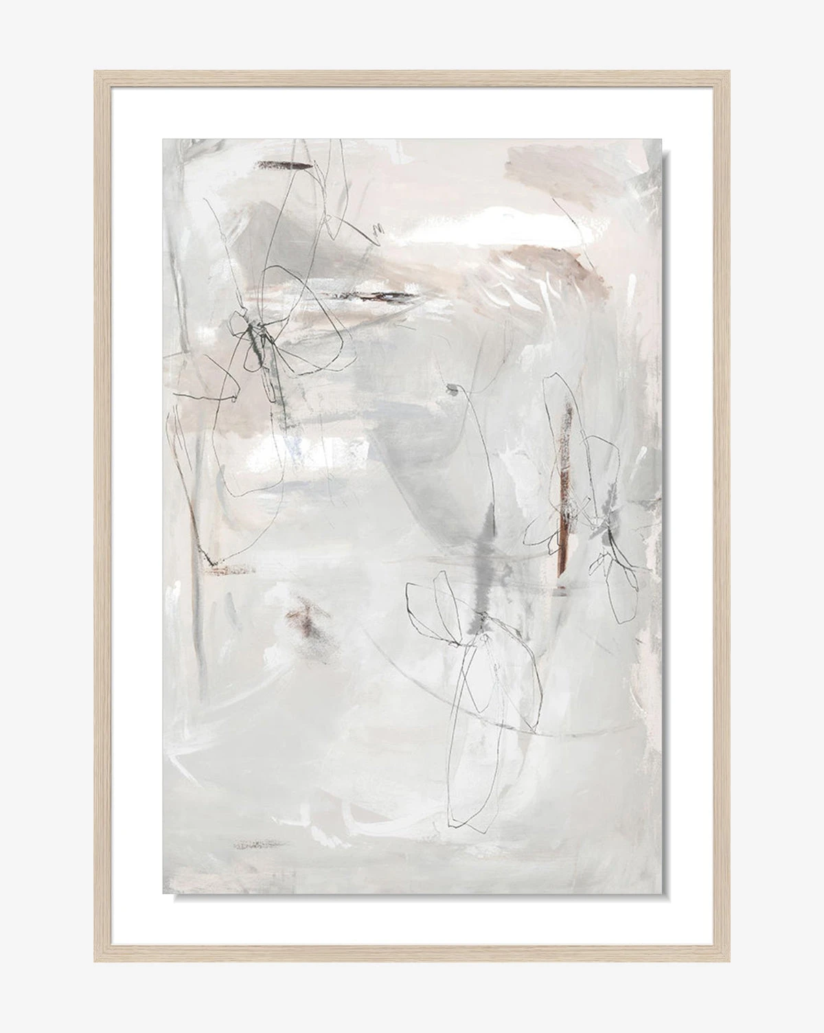 A subtly intricate and neutral piece, Soft Lines Abstract II has a masterful and cohesive composition with thin lines and layers of brushwork. Framed in natural wood, the giclee print brings a museum quality to your space.
