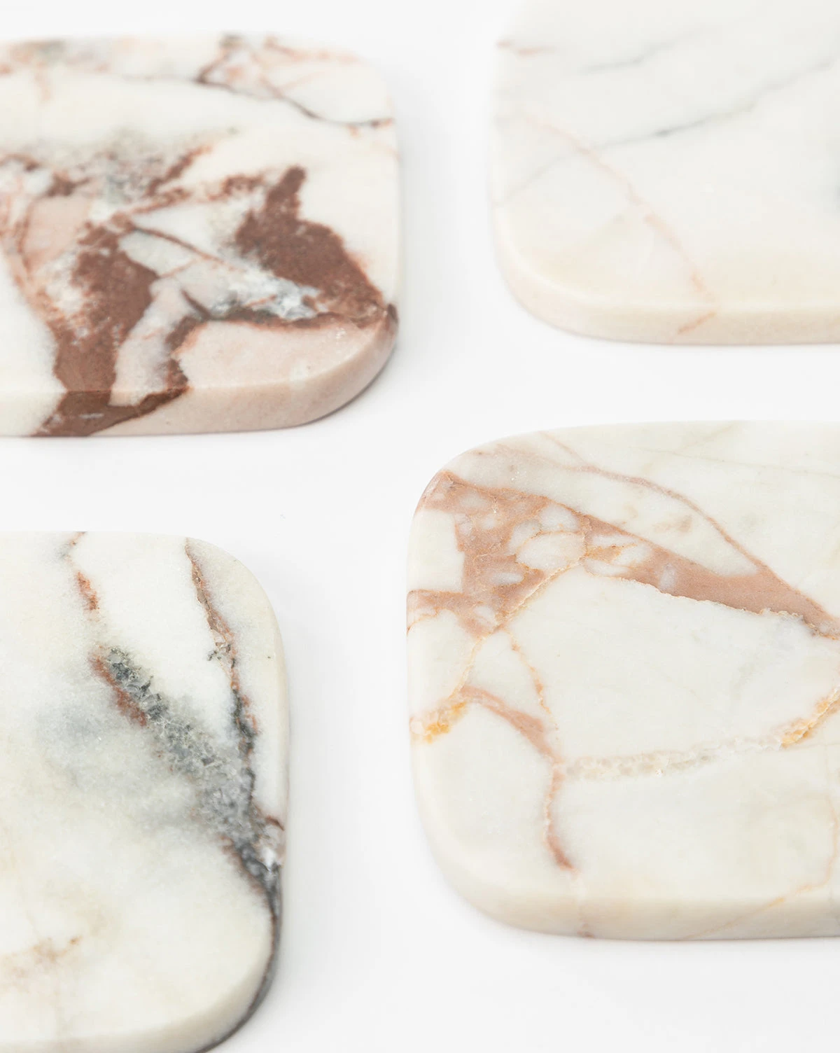 From the natural marble details to the elegant form, the Verona Matte Marble Coasters make a statement. Styled in an everyday or special occasion tablescape, the marble coasters seamlessly elevate existing decor.Â