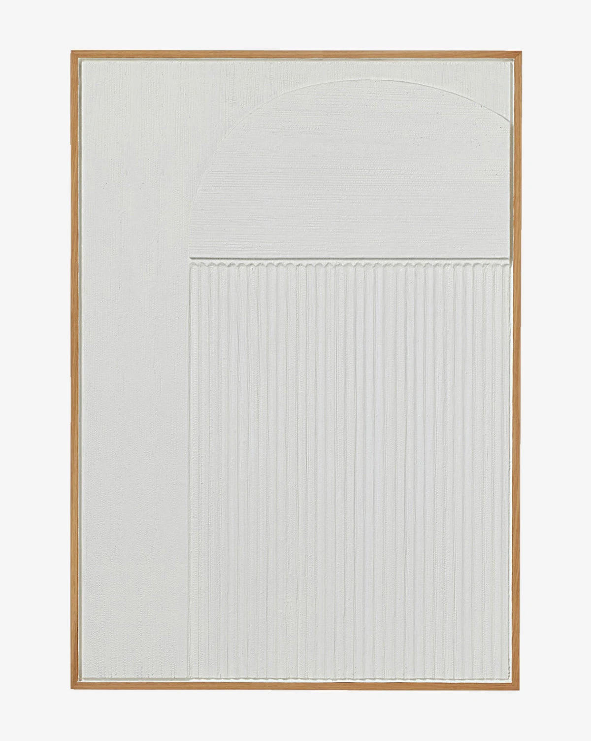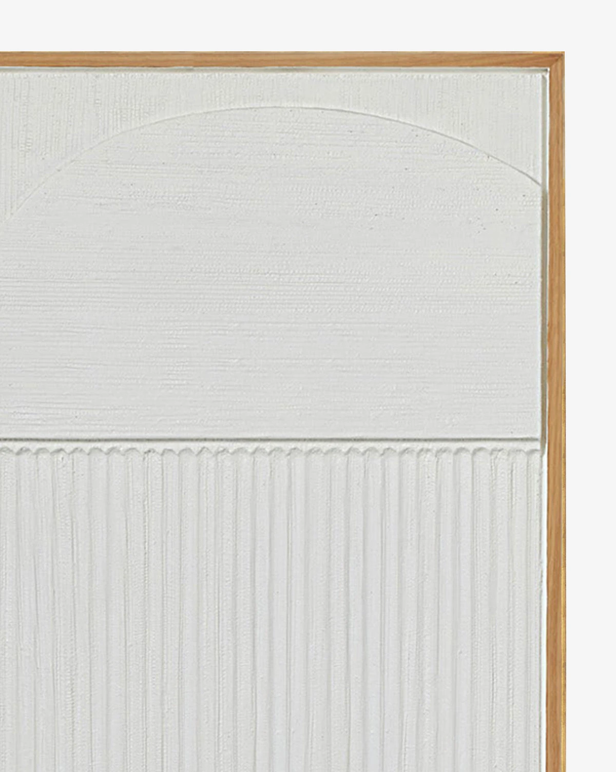 Subtle and contemporary, Vertical Texture is a textural art piece created with painted banana bark in a neutral yet captivating composition. Displayed within a natural oak veneer frame, the artwork brings museum-quality materials to your space.